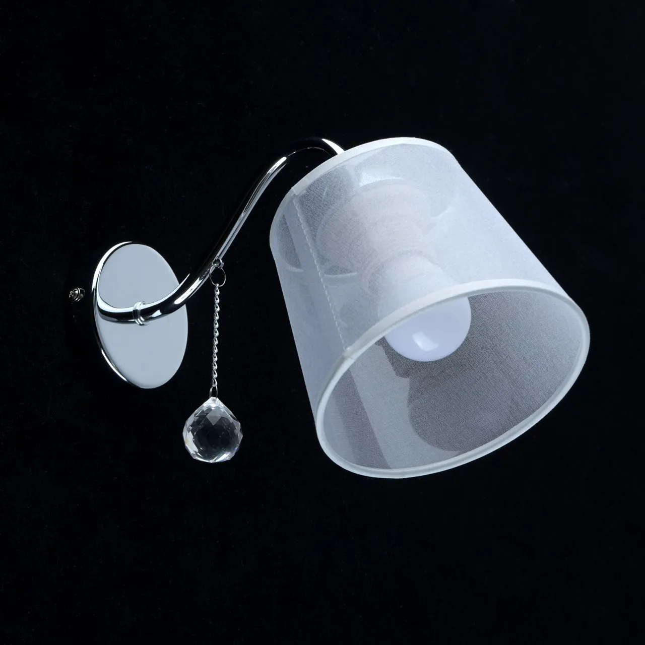 Основание/ металл/ хром. Абажуры/текстиль/ белый. Декор/ прозрачный хрусталь