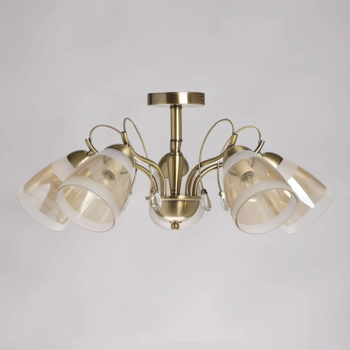 Основание/ металл/ античная бронза Плафон/ стекло/ матовое, шампань Декор/ хрустальное стекло/ про