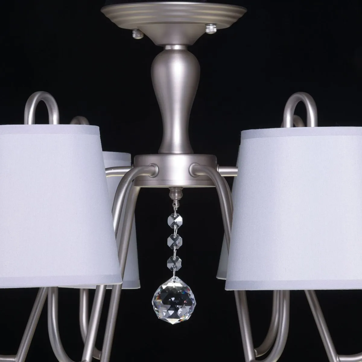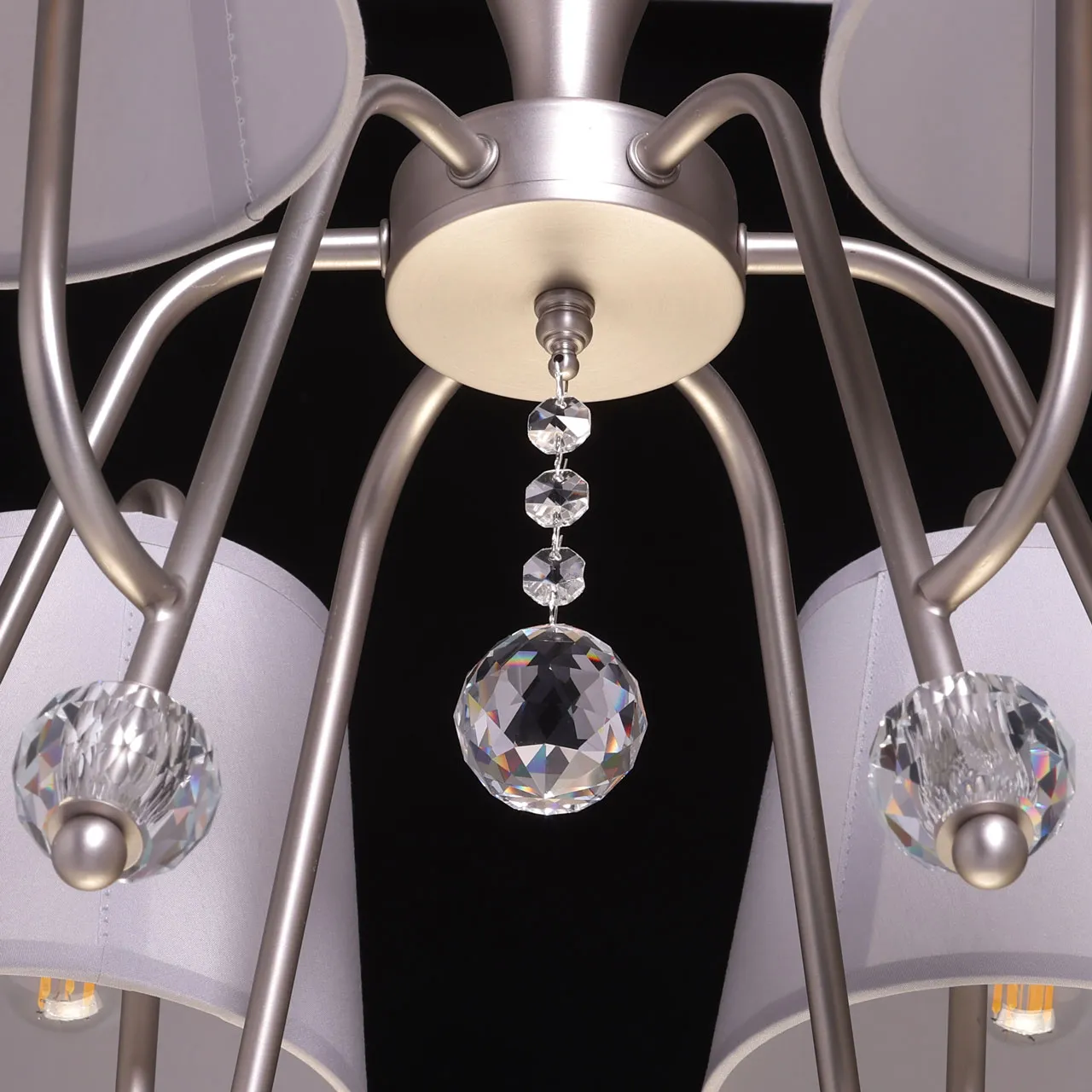 Основание/ металл/ перламутровое серебро Абажур/ текстиль, акрил/ серый, прозрачный Декор/ хрустал