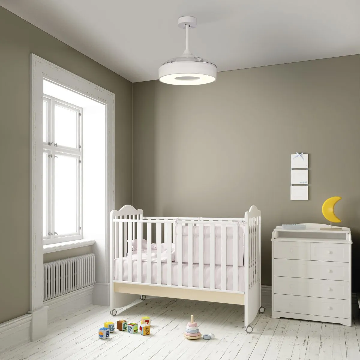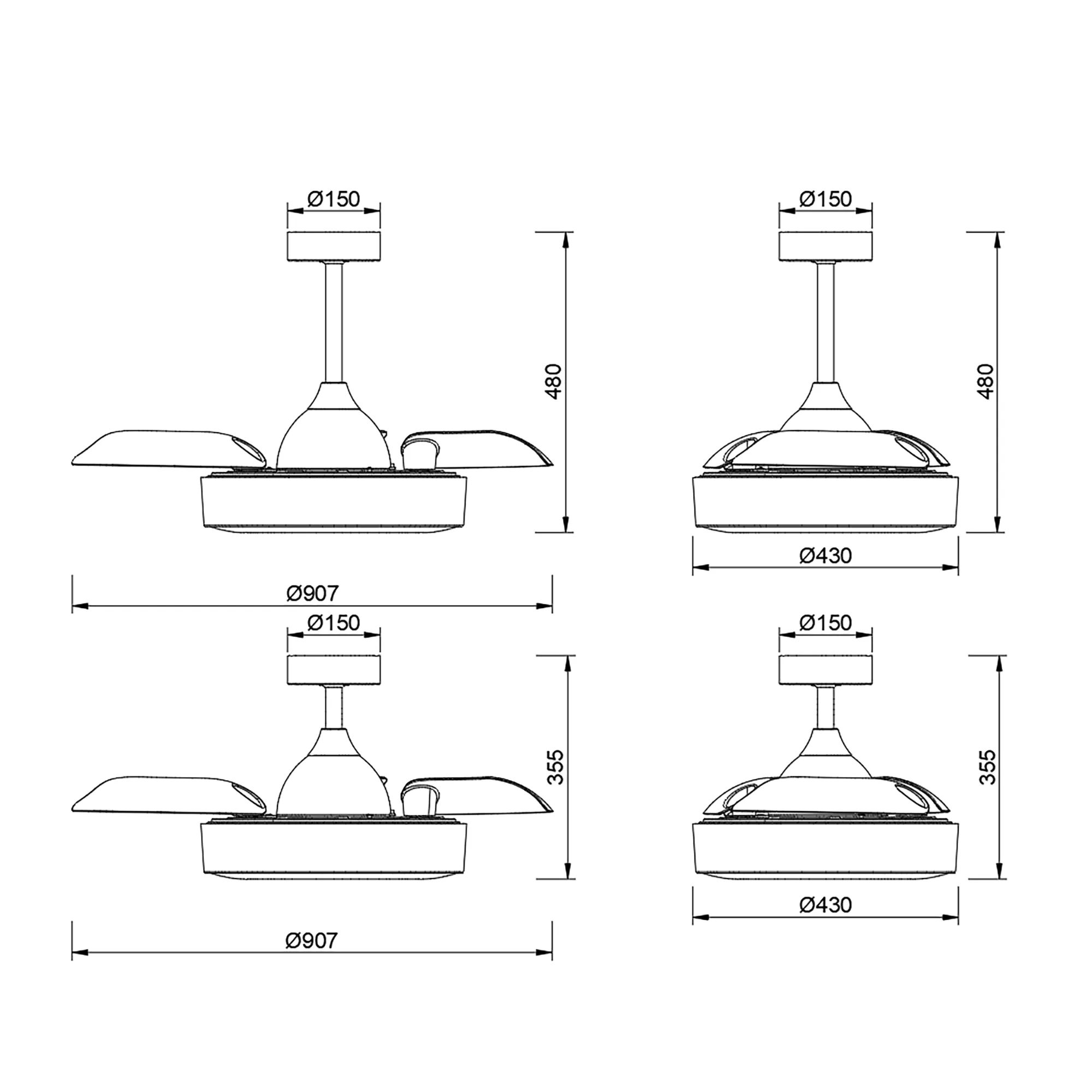 С помощью пульта пользователь может управлять яркостью и цветовой температурой освещения, скоростью вращения вентилятора, а также открывать или закрывать лопасти.