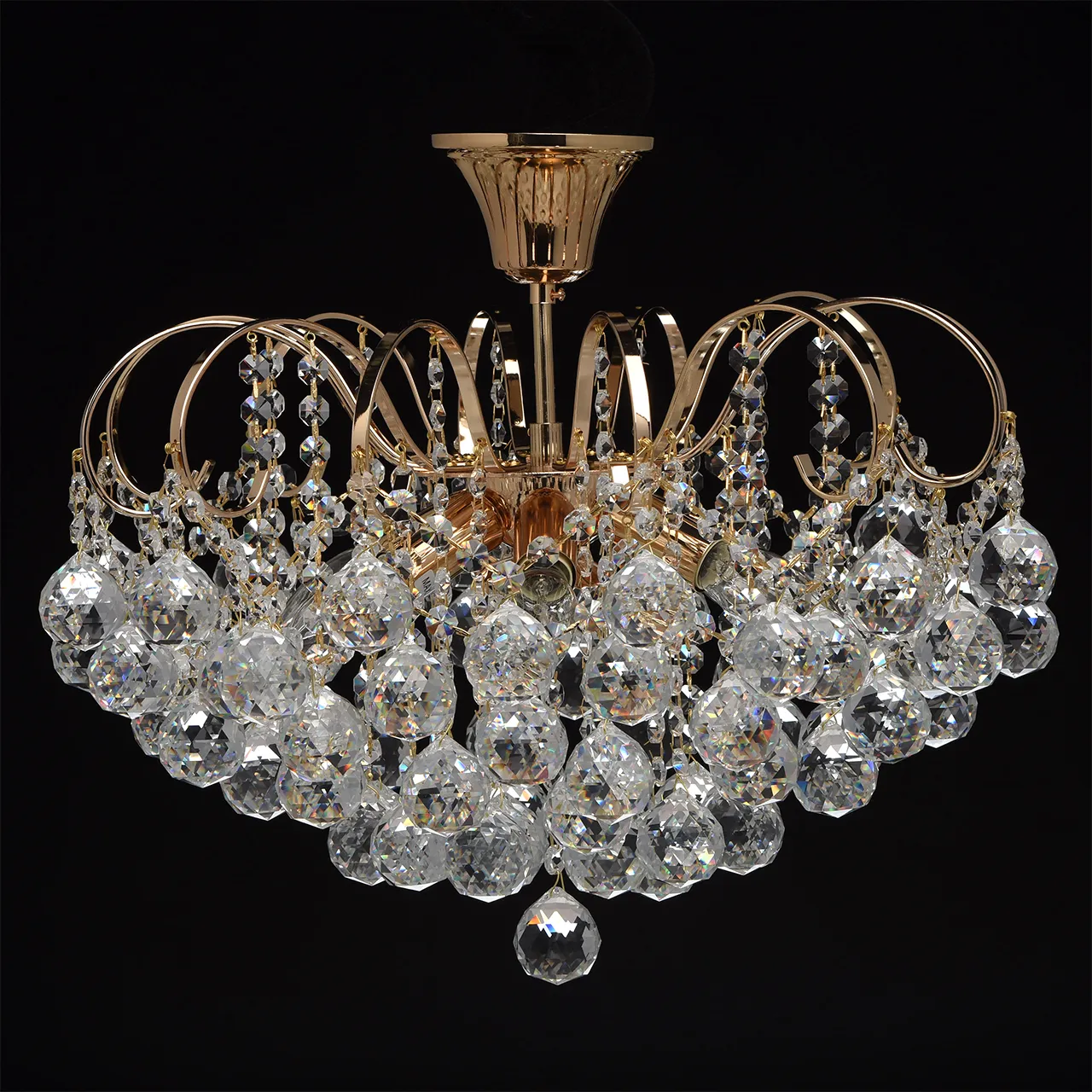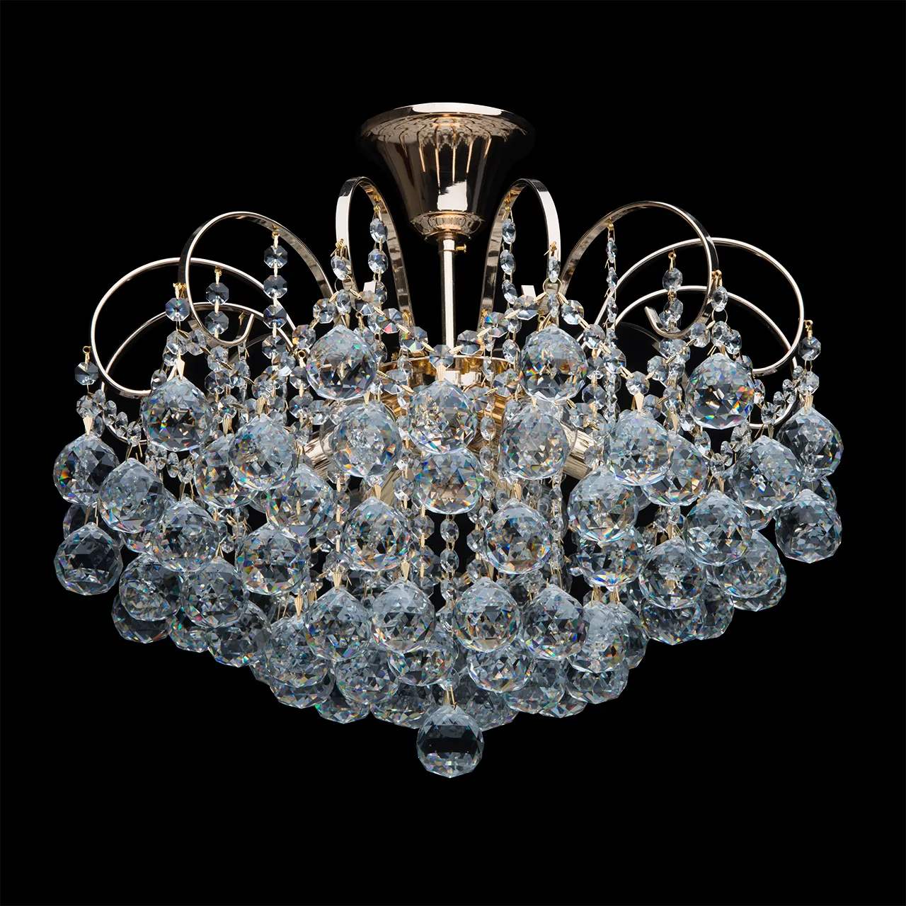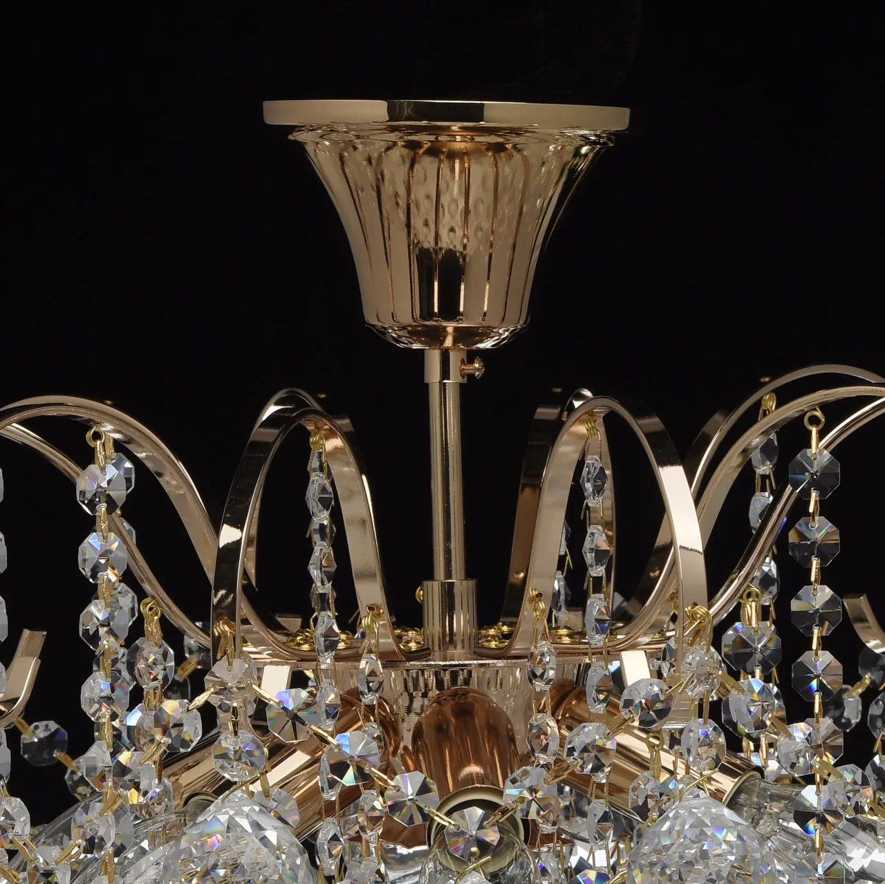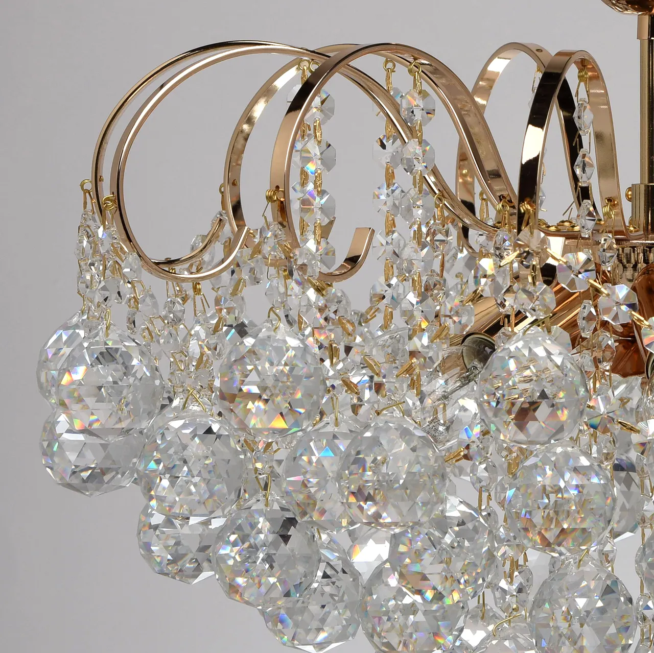 Металлическое основание цвета французского золота, декоративные подвески из хрусталя.