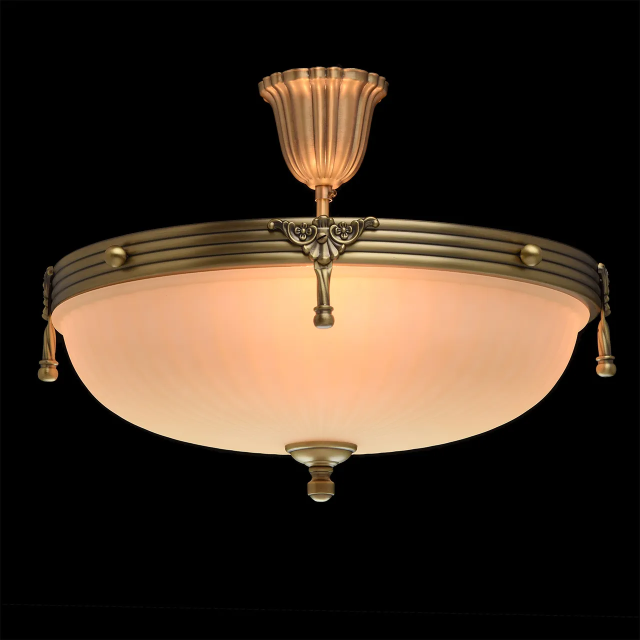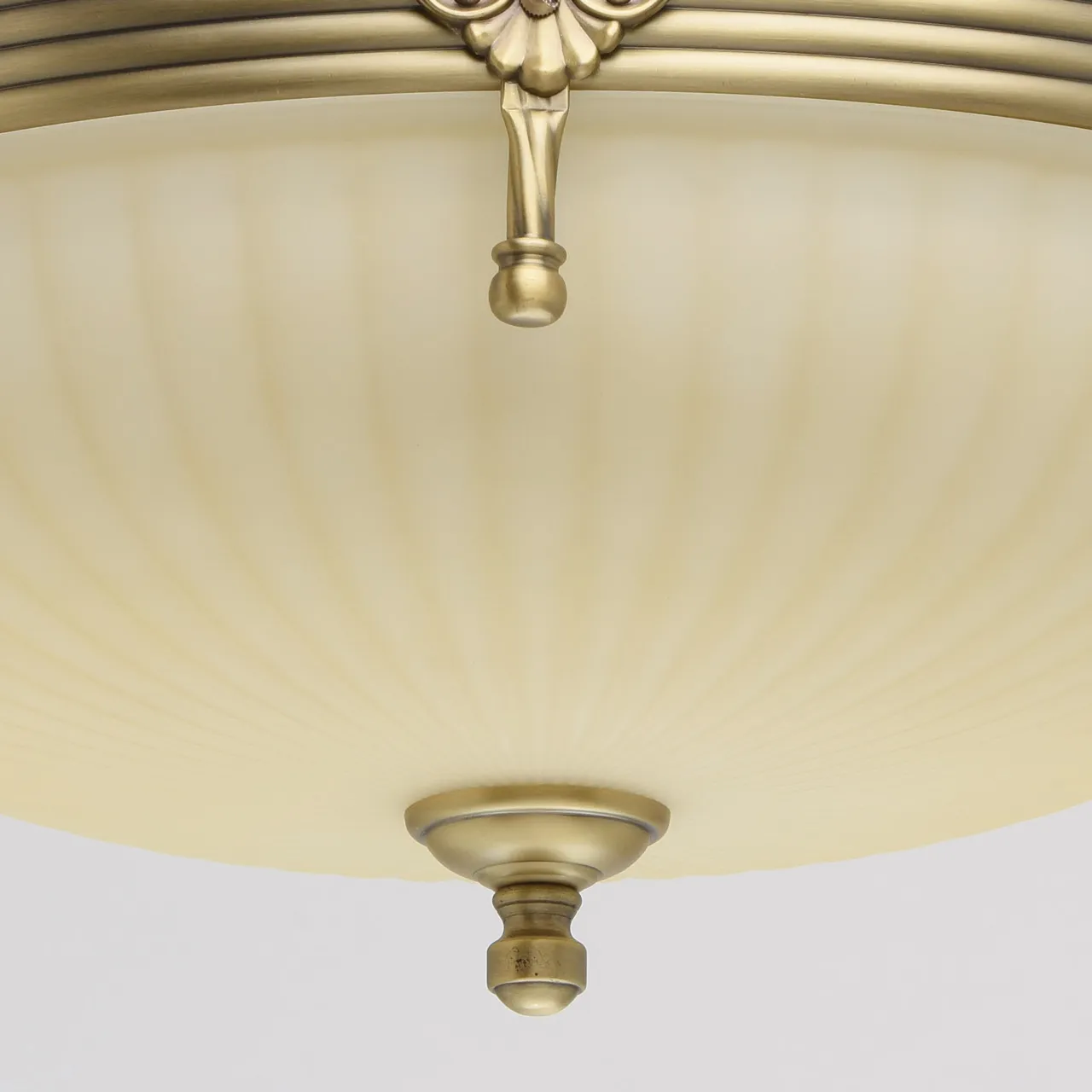 Алюминиевое основание цвета античной бронзы, стеклянный плафон цвета ванили.